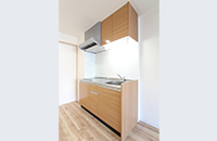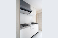 IHコンロ、ラジエントヒーター付き。ホーローパネル仕様でキッチン周りの掃除も楽々。